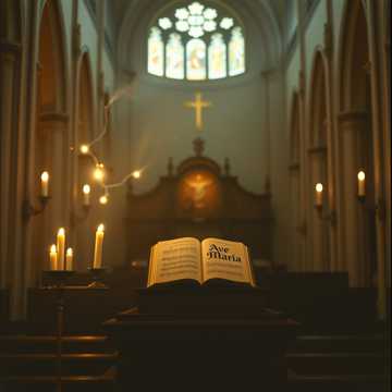 Sacred classical hymn in Latin, inspired by Ave Maria, slow and reverent tempo, emotional female soprano lead, soft choir harmonies, gentle piano and string orchestra, peaceful spiritual atmosphere, cathedral reverb, traditional church music, no percussion