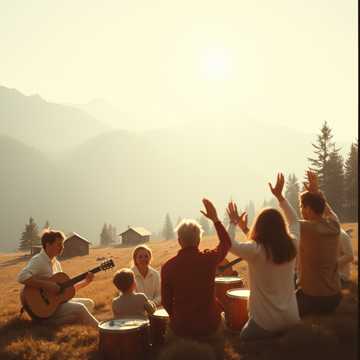Upbeat indie-folk with nylon guitar, brushed snare, and bright male vocals; verses stay close and conversational, then chorus widens with group chants, stomps, and claps like a campfire singalong. Light accordion fills the midrange, bass follows the vocal rhythm, and a brief whistle hook doubles the main melody in the outro.