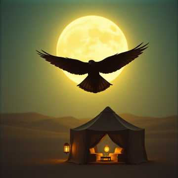 Majestic Khaleeji ballad with male vocals, oud and qanun leading over deep, rolling percussion and airy pads. Verses stay intimate and low, close-mic’d, with reverb that suggests a tent at night; the chorus blooms with stacked harmonies and strong melodic lift. Subtle backing chants answer key lines, and a short instrumental lift after the second chorus lets the strings soar before a gentle, vocal-led outro.