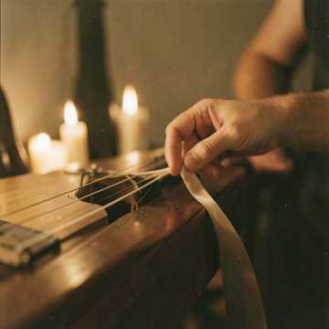 Emotional Khaleeji ballad with soft male vocals, slow tempo. Oud leads with tender arpeggios, joined by warm piano chords and subtle cinematic strings. Light frame drum and shaker ease in on the first chorus, deep bass swells on the second. Intimate verses stay close and breathy; choruses bloom with gentle harmonies and reverb tails that feel like lantern light., male vocals, slow, deep, emotional, romantic, light, soft, warm