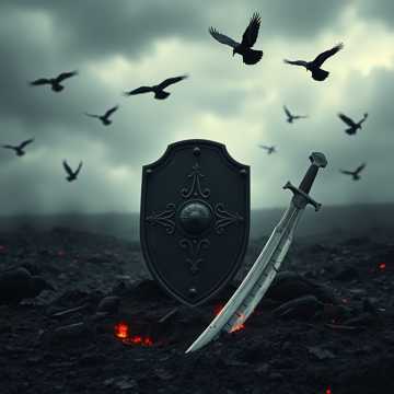 folk, Dark pagan folk hymn with male vocals; low droning strings, frame drum pulse, and deep throat-sung harmonies. Verses stay stark with a single bowed fiddle and distant war horns; chorus swells with layered gang chants and pounding toms. Bridge drops to almost a whisper over open tuned acoustic, then erupts into a final, triumphant refrain and long reverb tail.