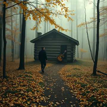 melodic, rhythmic ballad, harmonies in the chorus, deep male voice, only acoustic guitar