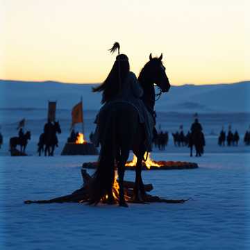 Yesügai, Dschamucha, und Ögedei riefen die Götter an Oh Tengri Herrscher des ewigen blauen Himmels der Mongolen und Herr des Unendlichen Ozeans wir rufen dich an mögest du in der Schlacht immer bei uns Sein und wachen mag dein schützend Hand Uns Glück versprechen in der Steppe Schlacht. In der Skythen heilig Land Der Steppe Böden karg und kalt Der Wind blies eisig Sand Die Bögen zogen nur halbe Kraft Wenn sie gespannt Der Schnee nass und kalt Die Pfeile schwer, die Federn klamm Der Winter naht. Aug einer Anhöhe stand Dschamucha und Dschingis Khan Sie blickten weit in die Steppe Auf dem Rücken ihrer Pferde tief ins Tal Wo funkelte in der Nacht Das Heerlager von Par Aghaba und Bulba Kahn
