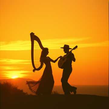 Traditional Venezuelan folk, harp and cuatro-driven, lively gaita rhythm, acoustic, festive and romantic