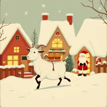 [Куплет 1] Кто шагает по сугробам? Кто идет по всем дорогам? Это Козлик наш идет, Деду завтрак он несет!
