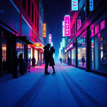 Style: 2026 Italo Disco / Modern Talking vibe, male vocal + choir backing, energetic, catchy, winter atmosphere, bright synths, strong kick, 126 BPM, nostalgic but modern, big reverb, glossy 80s production. Mood: neon winter city, romantic, emotional, danceable, powerful chorus, cold night + warm love. Structure: intro (choir), verse, pre-chorus, strong chorus, verse, pre-chorus, chorus, winter bridge, final big chorus, outro.