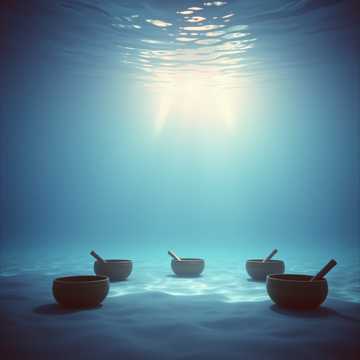 Floating ambient bed with Tibetan bowl drones tuned to 432Hz, slow-evolving pads, and subtle binaural pulsing that gently pans across the headspace; high-fidelity ocean recordings form a soft, constant bed. Occasional bell strikes bloom into long, shimmering tails. Dynamics stay very low and gradual, with almost imperceptible swells rather than big arcs—pure meditative immersion., healing, deep, gentle, tibetan, calming, beats