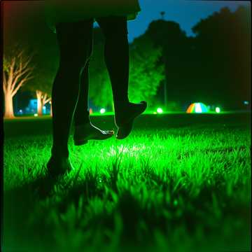 [Verse 2] Vi smyger nerför trapporna Tysta Hjärtat slår för varje steg Asfalten är ljummen under fotsulan Tills den sista lyktan bleknar ned Sen öppnar sig natten till en matta Av grönt som glittrar av regn Du tvekar precis vid kanten Jag tar din hand Drar dig in