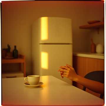 [Verse 2] Konyhaasztal Este Csendes lakás Csorgó tea Fáradt nevetés Gyerekrajz a hűtő ajtaján Közös napjaink kis történet-keretén