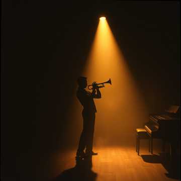 jazz, Slow, intimate jazz ballad at ~60-65 BPM. Sparse brushed-kit groove and soft double bass lay a breathing foundation under a deeply melancholic lead trumpet. Piano offers wide, open voicings and restrained answering phrases, leaving space for long, expressive trumpet notes with subtle vibrato and sighing bends. Occasional soft cymbal swells and low-register piano chords deepen the sorrow, with a hushed late-night club ambience. Energy stays low and aching, building only slightly in the middle before sinking back into a fragile, whisper-quiet ending., emotional, ballad, slow