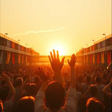 Uplifting Latin pop with bright acoustic guitar, warm piano, and steady kick-snare groove; male vocals leading a massive sing-along chorus, call-and-response chants, and crowd claps. Verses stay intimate and close-mic’d, chorus opens wide with gang vocals and soaring harmonies, brass stabs lifting the final hook.