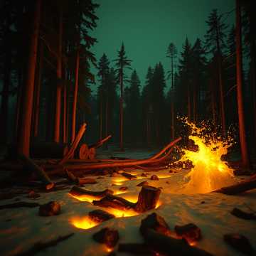 Vlammen in de nacht Bekers in de lucht Bospad trilt Op iedere klap Op elke zucht