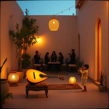 Warm Khaleeji pop with male vocals, gentle oud and qanun over a mid-tempo groove; hand percussion and claps lift the chorus, children’s choir doubles key lines. Start intimate and acoustic, then add subtle strings and backing vocals as the emotion grows, ending on a soft, a cappella repeat of the hook.