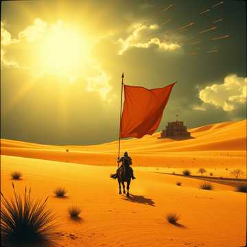 Aurangzeb ritt verbissen an vorderster Front Linie; hinter ihm seine ganze Mogul Kaiser Verwandtschaft und merkte nicht, daß sie mittlerweile in einer Talsenke mit hohen Dünen an den Seiten und vor sich die Erhebung mit der alten Zitadelle, die nicht zu umreiten und der Endpunkt im Tal Kessel und nur zu Fuß mit viel Mühe zu umgehen; und plötzlich drehten die achtzigtausend Radsch´puten Reiterkrieger um und stürmten in breiter, den ganzen Tal Kessel ausfüllender Front auf sie zu, mit ohrenbetäubendem Kriegsgeschrei; und es hagelte hundert Tausende von Pfeilen aus des Kessels Dünen und seine Krieger fielen und fielen zu tausenden unter der Pfeile tödlichem Beschuss; der Himmel ward schwarz und grausam sangen sie in des Himmels Höhen ihr tödlich Spiel; und immer noch ward kein feindliches Heer zu sehn. Sie versuchten zurück zu flieh´n; aber der Weg ward versperrt; sie waren eingekesselt. Volle Flucht nach vorn; da wurde er schon vom ersten Pfeil getroffen und fiel vom Pferd und sein Pferd gleich mit. Da wurden die Dünen schwarz und hundert tausende Perser, Skythen und Oghusen Krieger ritten die Dünen herab in leichtem Trab; ihre Skuthai Bögen gespannt; die nächste Salve würden sie nicht überleben; also forderte er Rana Singh Rathore zum Zweikampf heraus. Par Aghaba kannte diese Tradition auch aus der Skythen und Oghusen Heilig Steppenland. Ich bin Par Aghaba die Feder des Adlers und wenn der Skythen Greife ihre Flügel in der Steppe Höhen schwingen wird bald des Todes Lied erklingen. Par Aghaba und Bulba Kahn