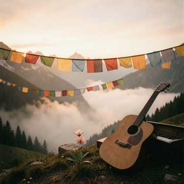 Warm contemporary Bhutanese pop ballad; gentle fingerpicked acoustic guitar and soft piano under intimate male vocals. Verses stay close and conversational; pre-chorus builds with airy pads and subtle toms; chorus blossoms with lush harmonies, open chords, and a steady, heartfelt groove. Light percussion and reverb-dusted claps lift the hook, then strip back for the final lines.