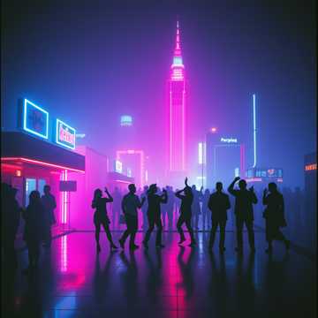 groovy synths, punchy basslines, vibrant atmosphere, energetic tempo, 80s modern disco, disco