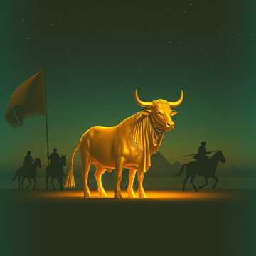 Par Aghaba und Bulba Kahn und ihre tapfersten Krieger waren eine Woche ohne Schlaf geritten und nun schliefen sie wohl drei Tage am Stück und wachten auf mitten in der Nacht. Laute Trommeln, Gesänge, Stöhnen wie wilde besoffene Tiere tanzten die eigentlich so lieben Menschen um ein riesig golden Kalb wollten es gar begatten und besamen das ist totes Gold daraus entwächst keine Leibesfrucht und Vergorene Stutenmilch und Hanfblütenbündel nehmen wir nur für Tausendjahre alte Rituale und nicht zum Tanzen.