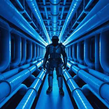 Blå overall och stål