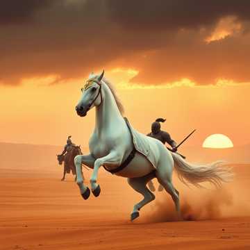 So standen sie sich gegenüber; der Wind blies heißen roten glasscharfen Wüstensand in ihr Kriegsharnisch Gewand. Bukehfalos der schwarze Rhappen Hengst der Höllenpferde Einer; in aller Welt bekannt schon Tausende Tapfere Krieger niedergetrammplt und größte Schlachtheere Flanken niedergeritten und besiegt; wahrlich ein göttliches Pferd von der Götter Todesboten der Schwarzen Engelns Hand geschenkt. Alexander lächelte spöttisch ja fast schon höhnend dieser junge Mann ward wirklich verrückt oder ward dies eine neue noch unbekannte weise des Todesmuts Sein freches Grinsen war sofort fort als sich Rach`sch erhob, auf seinen Hinterfüßen springend war er faßt vier Meter groß dieser weiße Schimmel Der der Götter Bote und der Sterne am unendlichen Firmament leuchtendste Zier, erstrahlte und leuchtete heller als der Polarstern selbst und schnell wie der Wind schon jetzt wurden seine göttlichen Taten in der Heldenlieder der Schahnameh besungen von Persien bis zum unendlichen Ozean. Par Aghaba sah sich beide Pferde genau an