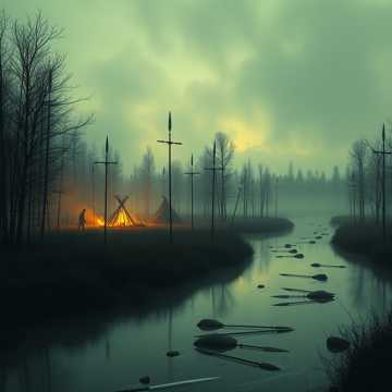 Das Moor ward schwarz tief und un´durchdringbar. Schmale dünne Bäume die Birken ähnlich sahen waren vereinzelt und hoch gewachsen mit stark bewachsenen Blätter Ästen so daß der riesige Sumpf von außen nicht einsehbar; und die Kinesen Sieges sicher ein riesiges Heerlager errichteten mit viel Holz, Leinen, Reis und Bambusblättern; alles Sachen die gut brennen würden und hinter sich im Rücken hatten sie einen sehr breiten und kraftvoll fließenden Strom der selbst mit Flößen gegen die Strömung kaum zu passieren war. Sie saßen in der Falle; nur wussten sie das nicht und waren felsenfest vom Gegenteil überzeugt da sie sich voll und ganz auf ihre starke Infanterie und Schieß Maschinen verließen und meinten die Reiterkrieger könnten sie nur von vorne und einer Flanke angreifen und sie deswegen nicht umreiten und umzingeln und unter Dauerbeschuss nehmen. Der riesige Sumpf war natürlich für Kriegspferde und Tri Böke Katapulte passierbar wenn man wusste wie. Und da lag das Geheimnis das der Schlacht Entscheidung trug. Osman hatte das Schlachtfeld sorgfältig gewählt und des Nachts Wege aus dicken Bambus Matten im Sumpf ausgelegt und sogar die Katapulte wurden so halbzerlegt des Nachts herbei transportiert und so hatten die Kinesen eine komplett offene linke Flanke und wussten gar nichts davon und schneller als sie es sich je hätten vorstellen können ward es um sie gewesen. Sie hatten Rasiermesser scharf geschliffene gegossene Bronze Schwerter Ji´an genannt; sehr lang und tödlich spitz; dann noch den tödlich Dah´o Breitschwert Säbel mit einer oberen Spitz zum Einsatz gegen die Kavallerie; damit schlägt man den Reiterkrieger Pferden die Beine ab. Lange scharfe, spitze Schneller Drache Speere und Ge´ge Hellebarden die Halbmond Lanze; ein Speer mit Axtfunktion. Dann die fliegenden Klauen; eine art Wurfstern in Olivenform und noch die Mandarin Enten Haken, zwei gekrümmte Klingen, paarweise eingesetzt, hervorragend zur Abwehr und bei engen Gefechten sowie das Liu´ksing´chui; der Kometenball und Sternhammer, zwei mit Ketten verbundene Gewichte, die Wurf und Schlagtechniken ermöglichten. Dann die Kwan Kun, Mond und Sonne Ringe eine vielseitige und tödliche Wurfwaffe und die neungliedrige schwere Eisenkette die um den Gegner geschlungen oder als Schlagwaffe eingesetzt werden kann. Am meisten Tradition hat der Yu´ey A´chan, die Mönch´s Schaufel genannt; eine Lang Stangen Waffe mit Sichelklinge dran. Par Aghaba wurds ganz gruslig zumut als sie die ganzen exotisch, grausam Waffen sah und sich dacht die tun bestimmt nicht gut. Ich bin Par Aghaba die Feder des Adlers und wenn der Skythen Greife ihre Flügel in der Steppe Höhen schwingen wird bald des Todes Lied erklingen. Par Aghaba und Bulba Kahn Par Aghaba und Bulba Kahn Par Aghaba und Bulba Kahn Par Aghaba und Bulba Kahn. Die Pferde schnaubten wild und heftig; zogen brutal und kräftig; gar garstig an den Trensen; die Zügel waren kaum zu halten; da ertönt der Angriffs Befehl; ein lauter Jubelschrei entfährt Achtzigtausend Reiterkriegern Kehl´n; die ersten beiden Angriffs Wellen stürmen aus dem Stand in vollem Galopp auf die Kinesen los drehen seitlich ab; reiten entlang der Front, die einen links die andren rechts schießen hundert tausende von Pfeilen ab; kehren um, treffen sich wieder in der Mitt; reiten nun versetzt in Li´ni´en gegeneinander in entgegengesetzter Richtung, schießen durch die Lücken tausende von Pfeilen; bündeln sich in kleine Gruppen; schießen nun aus allen Lagen; von hinten, vorne und der Seit; von oben hagelts eine halbe Million Pfeile; der Himmel ward schwarz; die Haupstreitmacht von dreihundert Tausend Reiterkriegern angeführt von Asena der Wölfin und Osman Khan ihrem Gemahl rückt langsam vor und nimmt den Feind von oben unter Dauerbeschuss; und nun feuern die Katapulte aus dem Sumpf die Skythisch Persisch Bi´tumen, Teer und Napalm Gemisch; die vorderen Reih´n der Kinesen brechen ein; die ersten wollen seitlich flüchten; müssen über die Leichenberge der gefallenen Kameraden steigen; eher mehr trampeln und rennen um ihr Leben und wollen sich im Sumpf verstecken doch hundert tausende von Pfeilen strecken sie nieder; bleibt nur noch der riesige Fluss im Rücken; die meisten ertrinken; das Kinesen Heerlager gleicht einem Flammeninferno; die ersten Generäle ergeben sich und lassen die weiße Fahne schwenken Osman läßt die letzte Salve abfeuern und nach allen Seiten absichern. Kin Schi Huang`di ward geflohen was nicht anders zu erwarten war. Ich bin Par Aghaba die Feder des Adlers und wenn der Skythen Greife ihre Flügel in der Steppe Höhen schwingen wird bald des Todes Lied erklingen. Par Aghaba und Bulba Kahn Par Aghaba und Bulba Kahn Par Aghaba und Bulba Kahn Par Aghaba und Bulba Kahn Par Aghaba und Bulba Kahn Par Aghaba und Bulba Kahn Par Aghaba und Bulba Kahn Par Aghaba und Bulba Kahn. Par Aghaba und Bulba Kahn… Par Aghaba und Bulba Kahn Par Aghaba und Bulba Kahn Par Aghaba und Bulba Kahn Par Aghaba und Bulba Kahn. Par Aghaba und Bulba Kahn…