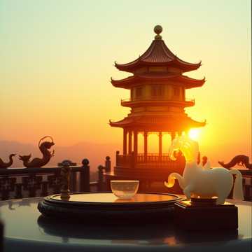 Direkt an der kinesischen Mauer wurde eine riesige Zinnober rote mit feinstem Kina Lack versiegelte und Goldplättchen verzierte mehrgeschossige Teehaus Pagode errichtet deren Drachen Flügel, geschwungenen Daches Schwingen in alle vier Richtungen zeigte und oben auf der runden Pagoden Spitz, ein riesiger Wolfs und Drachenkopf, die beide in die gleiche Richtung blickten. Dieses prächtige Bauwerk war nur zu diesem Anlass erricht und würd danach wieder abgeriss´n; eine Begegnung auf neutralem Boden der sowohl die Grenze als auch die Verbindung symbolisierte. Soviel Pracht und Prunk, glich schon fasst Verschwendungs Sucht; aber die Ressourcen dieses Landes waren nahezu unerschöpflich; Kaiser Kin Schie Huang´di wusste dies. Osman der Große; Khan aller Khane war in kompletter, der Skythen Tradition Kriegsbewaffnung und ritt vor der riesigen Teehaus Pagode auf den Sohn des Himmels und ewiglichen Herrscher des Drachen Throns, Kin Schie Huang´di zu der vollständig in erlesenstem Seidenlagen Prachtgewand gekleidet und jetzt auch von seinem unbezahlbaren Fer´ghana Hengst, Drachenwind abstieg und ihn freundlich begrüßte. Sie gingen durch das riesige runde Tor der Teehaus Pagode wo sie schon vom kaiserlichen Zeremonien Meister erwartet wurden, der ihnen knie´end eine große Bronzeschale darbot in der sie gemeinsam ihre Hände wuschen was die Reinheit der Absichten kund tut.