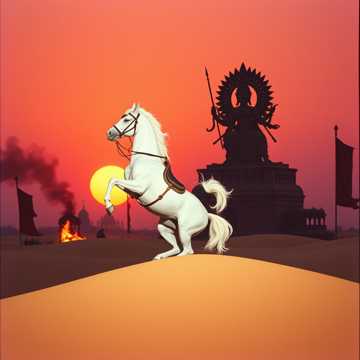 Ba´ha´dur der Ti´ger von Radschan´pur stand auf und stieg auf seinen edlen weißen Radsch´puten Kriegs Hengst und zog seinen heiligen Kata Dolch: So laßt und beginnen mit den heiligen Ritualen und uns vorbereiten auf die Schlacht; wir werden brechen der Mogul Kaiser Macht und bis in die Unendlichkeit an eurer Seite reiten du Mutter aller Völker. Das Kriegsritual begann: In der Stunde, in der das Purpur der Dämmerung auf die schroffen, spitzen Zinnen der Wüstenfestung traf, verwandelte sich das Lager der Radsch´puten in einen Vorhof zwischen den Welten. Die Luft ward schwer vom herben Duft von brennendem Sandelholz und dem metallischen Odem blankgeputzten Stahls. Wenn die Krieger die Götter befragten, begann das Schweigen der Wüste zu singen. Es begann das Erwachen des Stahls; die heilige Klinge wurde angerufen. Zuerst neigten sich die Fürsten vor dem Schastra Pu´tscha, der Anbetung der Waffen. Die Talwaren und Dolche wurden nicht als totes Eisen, sondern als Gefäße göttlicher Kraft betrachtet. In tiefer Medi´ tation saßen die Krieger vor ihren blanken Klingen, die im Fackelschein wie tödliche, eingefrorene Blitze zuckten. Sie benetzten den Stahl mit heiligem Gangeswasser und zeichneten mit rotem Kumkum Pulver das Zeichen der Tilaka auf die Rasiermesser scharfe Schneide; ein rituelles Versprechen, daß dieses Eisen nur für die Ehre und den Schutz der göttlichen Weltordnung, Dharma singen würde. Das Orakel des Feuers begann…! Vor dem Standbild der Durga, der schrecklich schönen Mutter des Krieges, entfachte der Brahmane das heilige Homa Feuer. Während die Flammen gierig nach den Opfergaben aus Butterfett und Getreide griffen, starrten die Krieger in das tanzende Licht. Man glaubte, dass die Art, wie der Rauch aufstieg oder wie das Feuer knisterte, die Stimme der Götter sei. Ein plötzliches Aufflackern galt als das Lächeln der Göttin; ein Zeichen, dass sie bereit war, auf den Schlachtfeldern menschlich Blut zu ernten. Par Aghaba ließ ebenfalls ihre Waffen weihen. Ich bin Par Aghaba die Feder des Adlers und wenn der Skythen Greife ihre Flügel in der Steppe Höhen schwingen wird bald des Todes Lied erklingen. Par Aghaba und Bulba Kahn