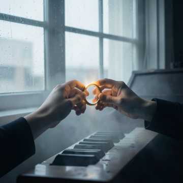 Melancholic Ukrainian pop ballad with male vocals, gentle piano and spacious reverb; verses stay intimate and close-mic, then chorus swells with strings and soft toms. Subtle synth pads bloom on key phrases, with a lifted middle eight where the vocal soars before dropping back to a hushed final hook.