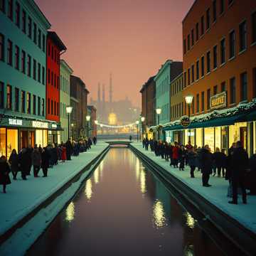 Snön faller vit över kanalen, ljusen glimmar längs stadens fasader. Barnen skrattar på Storgatans torg, julens magi känns i varje steg vi tar.
