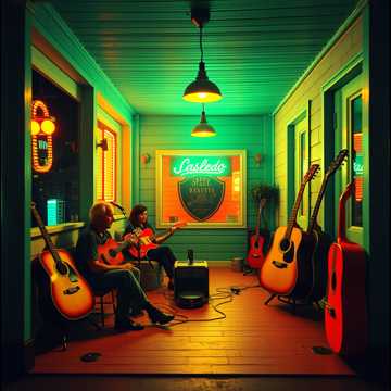 Upbeat corrido tumbado feel; nylon-string guitars with a bright requinto answering vocal phrases, tuba carrying a bouncy bass line, tight snare with occasional rimshots. Verses stay storytelling and close-up; chorus widens with gang vocals and easy call-and-response. Short instrumental turnaround between sections keeps the groove moving, vocals slightly overdriven for grit, male vocals front and center.