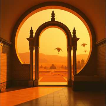 Mumo`Cheng ward von zwei Ringmauern fest umschlossen und hatte ein großes Rundtor vor daß man ein massives Falltor herunterlassen konnte, daß aus schwerster Bronze gegossen und undurchdringbar war. Alle der Häuser Behausung waren kegelförmig oval oder rund; nichts hier kannte Kanten oder Ecken alles war hübsch oval und rund; selbst die Zugangstreppen umschlossen die behausten Häuser und Paläste von außen vollständig oval und schön rund. Auch der Menschen Kopfbedeckung aus feinstem Rutenbund geflochten und schön rund und bunt sah aus wie zu groß geratener Hut mit Eierköpfen die ganz glücklich zu sein schienen über ihren schönen runden bunten Hut. Daß waren tibetanische Mönche die vom Dach des Himmels als Pilger hierher kamen und bald weiterreisen um zu pilgern und die Botschaft Buddhas weiterzutragen.