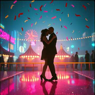 Upbeat Polish disco polo carnival hit, joyful party atmosphere, energetic but still warm and melodic. Very catchy chorus, danceable tempo. Smooth male vocal with a friendly, bright tone (not shouty). Instrumentation: prominent accordion melodies and rhythmic accordion backing, bright melodic trumpet leads and festive trumpet fills, bouncy synth leads, light dance beat with four-on-the-floor kick, groovy bass. Mood: colorful carnival night, lights, dancing crowd, happiness, romance on the dance floor. Radio-friendly, positive, festive vibe. No shouting, no aggressive vocals, no spoken hype lines.