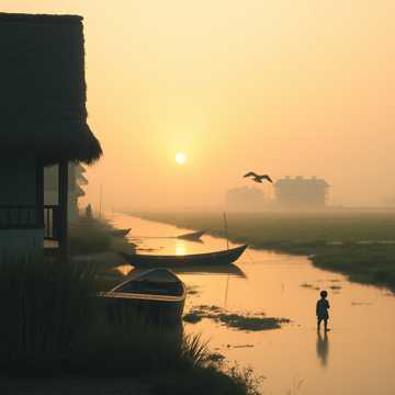 Lũ trẻ nhỏ chân trần bờ đất