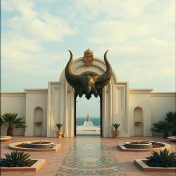 Par Aghaba und Bulba Kahn Par Aghaba und Bulba Kahn Par Aghaba und Bulba Kahn. Karthago ward ein riesiger Strahlenkranz inmitten des Azurblauen Meers und des Mittelmeers größte und erhabenste Zier. In den Gassen der Unterstadt gab es ein Freudenfest für alle Sinne; es duftete nach scharfem Kreuzkümmel, Anisgewächsen und luftgetrockneter Baumrinde von Zypressen; fermentierter Garum Fischsoße, die die Römer so liebten und getrockneter Datteln in allen Farben, Formen wurden von den ganz in kräftiges Blau komplett verhüllten Sahara Bewohnern aus dem Stamm der Tua´reks angeboten. Der Palast von Königin Dido war ein Wunderwerk punischer Architektur und Gärtnerei der alle Sinne betört und weltweit seines gleichen sucht. Das riesige Eingangstor war aus massivem mit Bronze und Elfenbein beschlagenem Zedernholz. Es öffnete sich zu einer majestätischen Treppe aus poliertem, hell schimmerndem, steinweiß und rosa glänzendem; vollständig poliertem Marmor aus der Etrusker Karrara Marmor Steinbruch Vorkommen; deren Stufen so breit waren, dass eine ganze Delegation nebeneinander emporsteigen konnte, während die Sonne auf den tausenden von kunstvoll gefertigten Mosaiken und Ornamenten tanzte. Durchschritt man das Tor entfaltete sich ein paradiesischer, geheimnisvoller Garten. Unter Zitronen, Orangen, Zypressen und Pinienbäumen duftete es nach ä´therischem Baumharz und Zitrusfrüchten. Ein sanftes Plätschern begleitete den Gang entlang verschlungener Wege, die zu Wasserspielen, Brunnen und Becken führten. Tausende von bunten Mosaiken zierten die Ränder der Becken und schufen schimmernde Bilder von Meeresbewohnern und Göttern, während das erfrischende reine Quellwasser in der drückenden Hitze Karthagos kühl und klar glänzte. Par Aghaba war be´eindruckt. Ich bin Par Aghaba die Feder des Adlers und wenn der Skythen Greife ihre Flügel in der Steppe Höhen schwingen wird bald des Todes Lied erklingen. Par Aghaba und Bulba Kahn