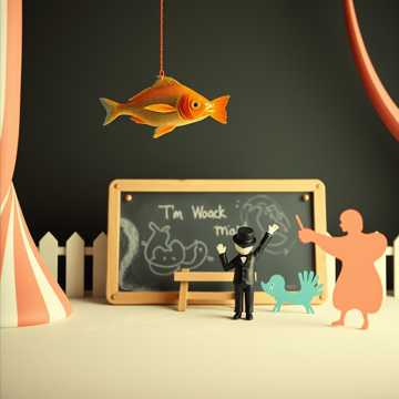 Playful Italian indie-pop with male vocals, shuffling brushed drums and a bouncy upright bass; verses half-spoken over quirky organ stabs, then chorus blooms with gang vocals, claps and a whistled hook, keeping everything light, clownish and slightly tipsy