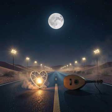 Arabic pop anthem with male vocals: open on sparse qanun and airy oud under a soft, melancholic mawal; gradually add deep darbuka groove, claps, and bright strings as the verse builds. Chorus explodes with layered crowd-style backing vocals and wide synth pads for a stadium feel, then drops back to an intimate groove between hooks.