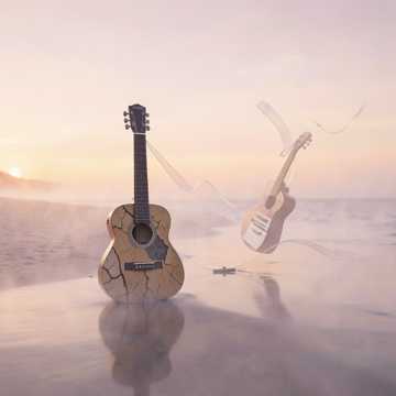 Warm intimate Russian ballad, male vocals. Close-miked acoustic guitar fingerpicking in the intro, breathing room ambience. First verse stays hushed and fragile, then chorus widens with gentle low strings and soft piano doubling the chords. Subtle backing harmonies lift key lines; final chorus strips back to just guitar and voice for a resigned, tender fade.