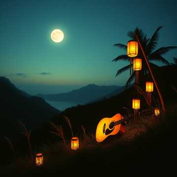 Breezy Vietnamese pop-folk, midtempo guitar groove over warm bass and light percussion; subtle cồng chiêng textures and airy pads. Verses stay intimate and close-mic’d, chorus widens with stacked male vocals and bright backing harmonies, tambourine lift and simple claps. Short bridge with stripped-back acoustic then final chorus hits fuller, shimmering reverb on the vocal. Male vocals.