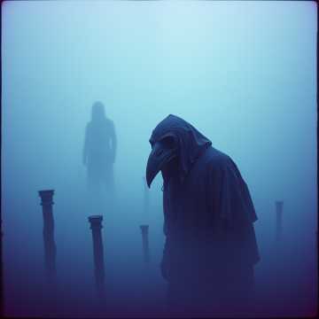 [Verse 2] A máscara de corvo oculta a verdade Olhos que veem além da realidade Trevas dançam no olhar profundo Um artefato que engole o mundo