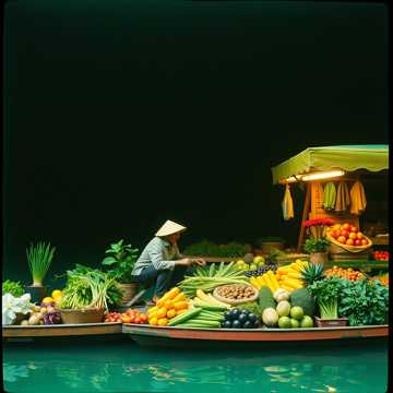 Trên dòng sông lặng lờ trôi, Có tiếng rao vang giữa đất trời Chiếc ghe nhỏ chở bao niềm vui Giữa chợ nổi, tình người phơi phới.