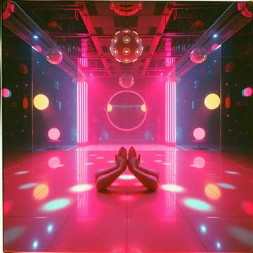 upbeat groove with a pulsating bassline and shimmering electronic textures, melodic, synth-driven, disco