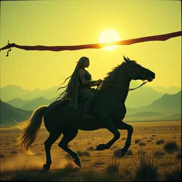 Asena sah Osman lichthell, mit wachem Verstand, leuchtender Neugier; klar und strahlend, erwartungsvoll gespannt, tief in seine Augen ihren Blick versenkend und erwitternd wie ein edles, erhabenes mächtges Raubtier auf der Jagd, wie ein Funke Wildheit in Samt gehüllt schimmerten ihre grüngrauen wilden Wolfs Augen seherisch, erforschend und erschauend, herausfordernd und tief dunkel funkelnd wie schwarzer Diamant und ließ ihn erschaudern, zugleich erstaunen und sie nun lächelte anziehend und voll der stillen Eleganz; ihre Lippen lächelten aufregend und charmant. Ihr schwarzes langes blühend strahlend kräftig glänzend leuchtend frisches Haar, strahlte in der Sonne wie schwarzer Obsidian und schwarzer Vulkanglas Anthrazit Granat. Ihr kurz geflochten Haar ein Kunstwerk aus tausender Knoten Schlingen Bögen Zöpfen feinster Strähnenlocken Schnecken so fein geflochten wie nur Türk`mehnen Hände es vermochten; eine wahre Pracht von edelster Zier und Handwerkskunst; tausendfach geübte Hände haben dies Meisterwerk geflochten. Osman rutschte das Herz mehr als nur in die Hos` als sie mit ihm sprach und so er bracht kaum ein Wort heraus und schämte sich ein wenig innerlich daß er bei Mädchen so komisch schüchtern ward. Du also bist der junge Skythen und Oghusen Prinz der so groß aufgesprochen vor dem großen Rat. Du mußt ja besonders sein so jung schon zu sprechen vor der Steppe Großen Rat aller Groß Khane und Khane. Das zeugt von Mut und scharfem Verstand aber das allein überzeugt mich noch nicht; zeig mal ob reiten kannst; und Par Aghaba sah nur noch eine peitschend Steppensand Staubwolke in der Kök Türkler weitem heilig Land. Asena Ergenkon Tamerlan Alp Er Tunga Tarras Bulba sah Par Aghaba tief in die Augen und sagte: Mach dir keinerlei Sorgen du tapferste aller tapferen Skythen Kriegerinnen ich kenne meine jüngste Tochter besser wie sie sich selbst; sie ist genauso wie ich einst in jungen Jahren; hätte ihr Osman nicht gefallen hätt sie ihm weit schlimmeres angetan als nur einen stumpfen Übungspfeil ins Herz geschossen. Sei dir gewiss bald ist das Eis gebrochen und sie wird ihn nie wieder loslassen deinen hübschen Osman Groß Khan Prinz.Ich weiß daß er bald die Steppe beherrschen wird von der Magyaren Land bis zum Altai; und da will ich an seiner Seite reiten. Glaub mir Par Aghaba, er wird der neue Groß Khan aller Groß Khane; vielleicht sogar noch größer als Dschingis Khan dem Groß Khan aller Groß Khane; Herrscher des unendlichen Ozeans und ewiglich blauen Himmels selbst. Und; so hoff ich doch wird ihm meine jüngste Tochter Asena die Wölfin viele Kinder gebären zu gründen eine neue Dynastie so wie es einst Dschingis Khan und jetzt Kublai Khan taten. Ich bin Par Aghaba Die Feder des Adlers Und wenn der Skythen Greife Ihre Flügel in der Steppe Höhen schwingen Wird bald des Todes Lied erklingen. Par Aghaba und Bulba Kahn Par Aghaba und Bulba Kahn Par Aghaba und Bulba Kahn Par Aghaba und Bulba Kahn. Asena peitschte in vollem Galoppp neben Osman; ihre Pferde berührten sich fast schon; und zog ihm beinahe ihre Reitgerte durchs Gesicht aber Osman interessierte das alles nicht; er wollt dieses Mädchen hab`n und zu seiner Gemahlin und Groß Khanin machen; sie könnt ihm sogar eine Lanze mitten durchs Herz rammen und er würd immer noch verliebt lachen. Sie zog an und versuchte in vollem Galopp seine Sattelriemen zu lösen ein alter Trick bei den Steppenkriegern wenn sie in den unbewaffneten Kampf gingen; jetzt zeigte Osman was er wirklich drauf hat; er war zur Hälfte Skythe und Stolz darauf. Er zog selbst den Sattelriemen ab und drückte den Sattel mit seinem Gesäß über des Pferdes Hintern nach hinten weg und ritt ohne Sattel noch schneller als mit; und jetzt kam ein alter Skythen Trick; er lies sich fallen in vollem Galopp und saß auch schon auf ihrem Pferd hinter ihr seine Brust an ihrem Rücken; Sowas hatte sie noch nie gesehen; sie stieb an; ging in volles Tempo und sprang sechs Meter von einer Anhöh in den kleine See um ihn los zu werden von ihrem Rücken den jungen attraktiven Sküthen; der sie mit den Armen fest umschlungen und ihre Schenkel fest in des Pferdes Flanken presst. Sie waren von oben bis unten pitschnass und lachten herzlich und vielen sich in den Arm. Ich bin Par Aghaba die Feder des Adlers und wenn der Skythen Greife ihre Flügel in der Steppe Höhen schwingen wird bald des Todes Lied erklingen. Par Aghaba und Bulba Kahn Par Aghaba und Bulba Kahn Par Aghaba und Bulba Kahn Par Aghaba und Bulba Kahn Par Aghaba und Bulba Kahn Par Aghaba und Bulba Kahn Par Aghaba und Bulba Kahn Par Aghaba und Bulba Kahn.Par Aghaba und Bulba Kahn… Par Aghaba und Bulba Kahn Par Aghaba und Bulba Kahn Par Aghaba und Bulba Kahn Par Aghaba und Bulba Kahn. Par Aghaba und Bulba Kahn…
