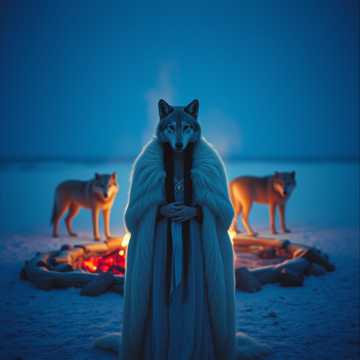 Die Kinna Getschesi begann: Es ward düster, unheimlich, still und fast tödlich leise. Nur eine kleine Schafsfettfackel flackerte im Zwielicht am Jurteneingang der fest verschlossen ward. Asena die Wölfin kniete vor einer Opferglut und beugte sich langsam nach vorn und sprach die magischen Schutzworte über des Brandkreises Glutes Rund und warf die Heilgen Hölzer und getrockneten Kräuter und Beeren, Tollkirschen, Hammeltalg und ätherischen Wurzeln hinein. Sie war völlig nackt; von einem riesigen Wolfsfell bedeckt dessen grausiger Wolfskopf mächtig und groß; gierig nach Menschenblut dürstend seine Teufelsfratze erhob und sich wieder senkte wenn sie ihr Arme gen Himmel erhob die Geistwesen zu rufen und ihre Ahnen kommen sollten sie besuchen in des magischen Zirkels Rund; sie beugte sich nach vorn legte die Arme nach hinten an; des Adlers Greifes Schwingen sind in des Todes Sturzflug. Die Priester und Schamanen Frau`n hoben langsam den heiligen Wolfshautmantel ab und sie richtete ihren Oberkörper auf und begannen die ekstatischen, summend, flehend Tränen und Klage Gesänge. Ein großer Hirschbock wurde am Führstrick hereingeführt und ihm blitzschnell mit dem Opfermesser die Kehle durchgeschnitten. Die Priesterinnen fingen das Blut des Opfertiers in einer Schale auf und strichen heilige Zeichen und Schutzsymbole auf ihre Haut. In des Hirschbocks Blut gaben sie Indigo und rote Stachelbeere und viel schwarzen Tee und bemalten ihre Arme, Hände, Brust und Rücken und ihre Oberschenkel die wohlgeformt, geschmeidig glänzten.