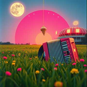 Big, ultra-melodic Schlager arrangement, mid-tempo 4/4 with bright brass hits, lush strings, and a singalong accordion hook; verses light and bouncy, pre-chorus lifts with tom fills and backing “oh-oh”s, chorus explodes with wide synth pads, claps, and stacked male/female gang vocals for maximum festival energy