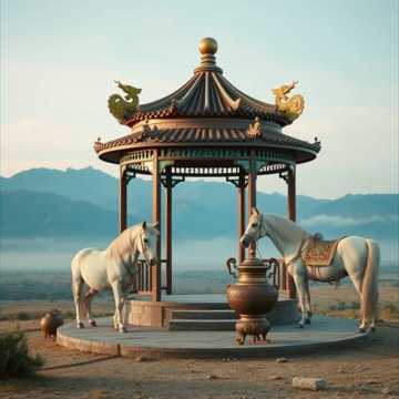 Direkt an der kinesischen Mauer wurde eine riesige Zinnober rote mit feinstem Kina Lack versiegelte und Goldplättchen verzierte mehrgeschossige Teehaus Pagode errichtet deren Drachen Flügel, geschwungenen Daches Schwingen in alle vier Richtungen zeigte und oben auf der runden Pagoden Spitz, ein riesiger Wolfs und Drachenkopf, die beide in die gleiche Richtung blickten. Dieses prächtige Bauwerk war nur zu diesem Anlass erricht und würd danach wieder abgeriss´n; eine Begegnung auf neutralem Boden der sowohl die Grenze als auch die Verbindung symbolisierte. Soviel Pracht und Prunk, glich schon fasst Verschwendungs Sucht; aber die Ressourcen dieses Landes waren nahezu unerschöpflich; Kaiser Kin Schie Huang´di wusste dies. Osman der Große; Khan aller Khane war in kompletter, der Skythen Tradition Kriegsbewaffnung und ritt vor der riesigen Teehaus Pagode auf den Sohn des Himmels und ewiglichen Herrscher des Drachen Throns, Kin Schie Huang´di zu der vollständig in erlesenstem Seidenlagen Prachtgewand gekleidet und jetzt auch von seinem unbezahlbaren Fer´ghana Hengst, Drachenwind abstieg und ihn freundlich begrüßte. Sie gingen durch das riesige runde Tor der Teehaus Pagode wo sie schon vom kaiserlichen Zeremonien Meister erwartet wurden, der ihnen knie´end eine große Bronzeschale darbot in der sie gemeinsam ihre Hände wuschen was die Reinheit der Absichten kund tut.