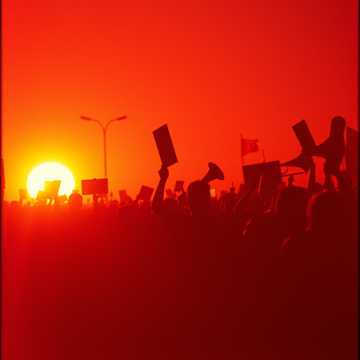 High-energy political campaign anthem, male vocals in Hindi. Dhol-tasha groove with marching band brass, claps, and crowd chants. Verses stay tight and rhythmic like a rally speech; hook explodes with group shouts and call-and-response. Breakdown bridge with drums and whistle hits before final chorus stacks gang vocals and rising horns for a stadium-style finish.