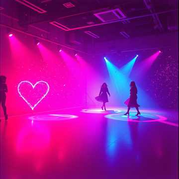 Na sali blask, czerwony neon serc,