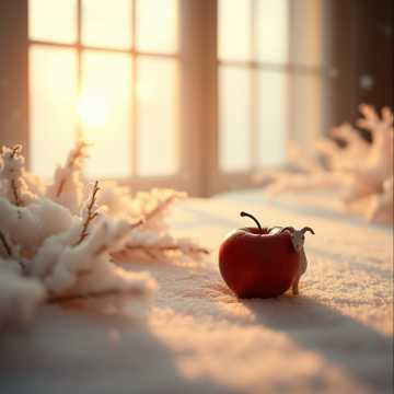 Подошёл он, носик сунул, На него тихонько дунул. Яблоко во льду застыло, Всё прозрачно и красиво.