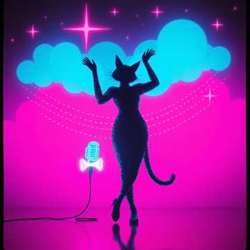 (Sparkling synth textures, soft breathy whisper: "Meow...", sensual giggle)