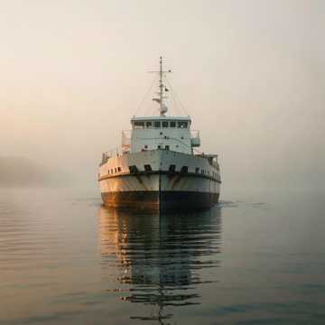 I fregaty kontur ukrył się za mgłą.
