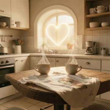 folk, Warm acoustic pop with male vocals, close-miked guitar and soft shaker groove. Intimate verse, then a bright, uplifting chorus with stacked harmonies and subtle piano doubles. Second pass adds light tambourine and humming backs for a cozy, romantic finale, kissed with gentle room reverb., happy, romantic, emotional, warm, male vocals, pop, acoustic pop